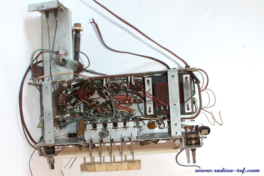 Au centre de la photo, le transformateur BF au milieu d'une petite usine de fils divers et variés: c'est un montage Philips ! ;).