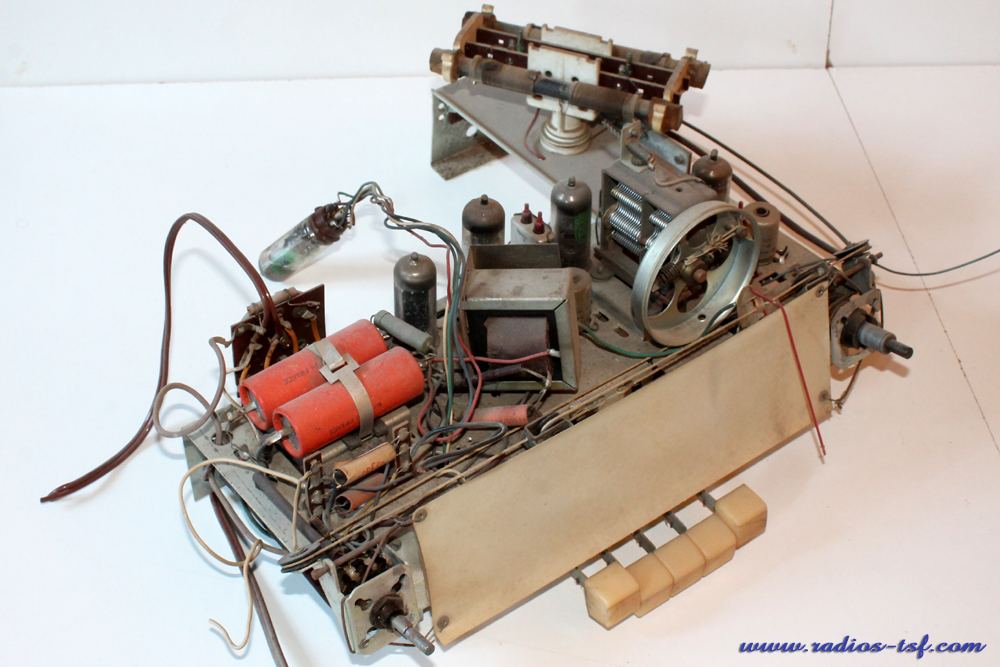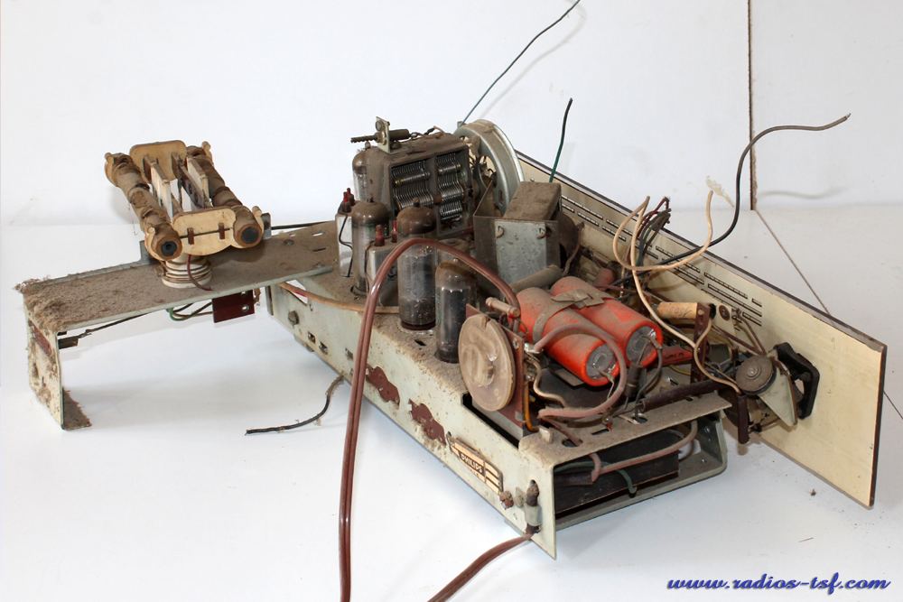 Ce poste est du type "Superhétérodyne" comme la majorité des modèles de cette époque. Sur ces photos, l'état extérieur du poste à sa réception: beaucoup de poussière et de rayures et en panne.
