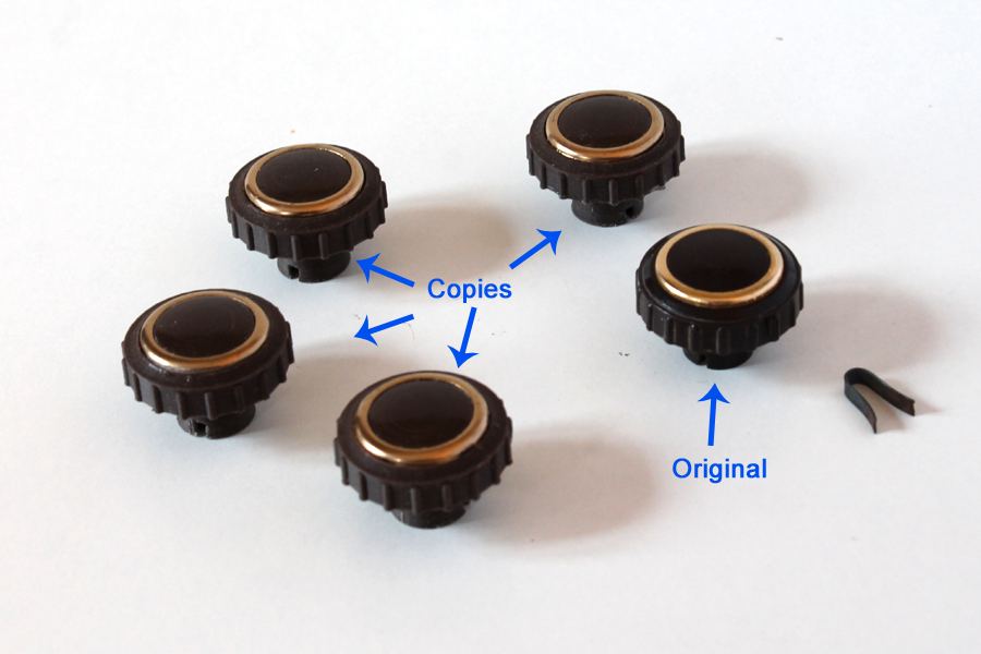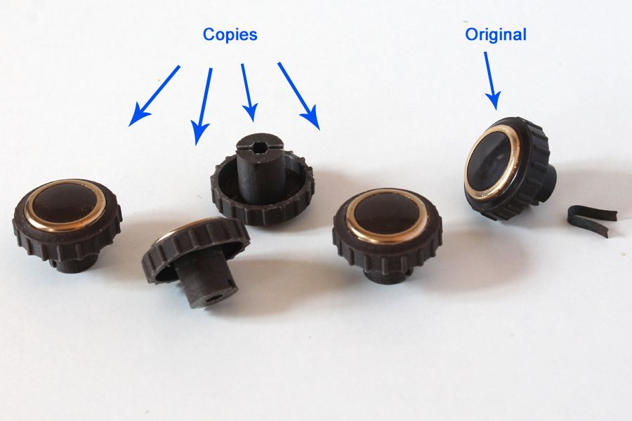 La nuance visible par rapport à l'original est une petite différence de couleur de la reproduction. De fines stries sont également visibles, dues à l'imprimante 3D (voir photos).