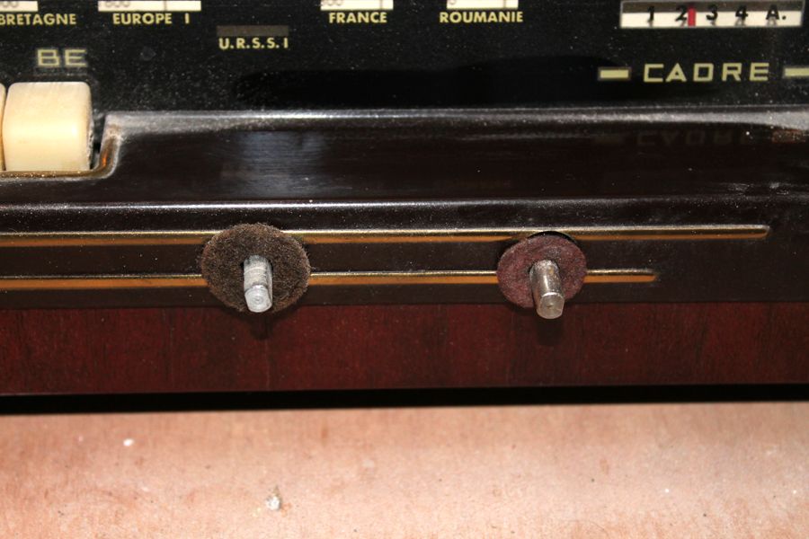 Lot de 4 boutons marrons ou ivoire pour poste de radios vintage.(voir photos)
