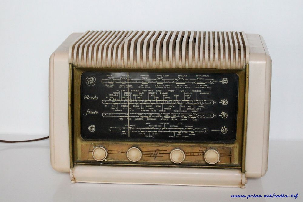 Exemple de poste de radio des années 50 qui a utilisé ce modèle : Modèle Rondo de Schneider, mais il y en a d'autres. La livraison comprend les 4 boutons ( photo N°1) sans la bague de serrage métallique. (paiement par carte bleue ou paypal sur cette page)