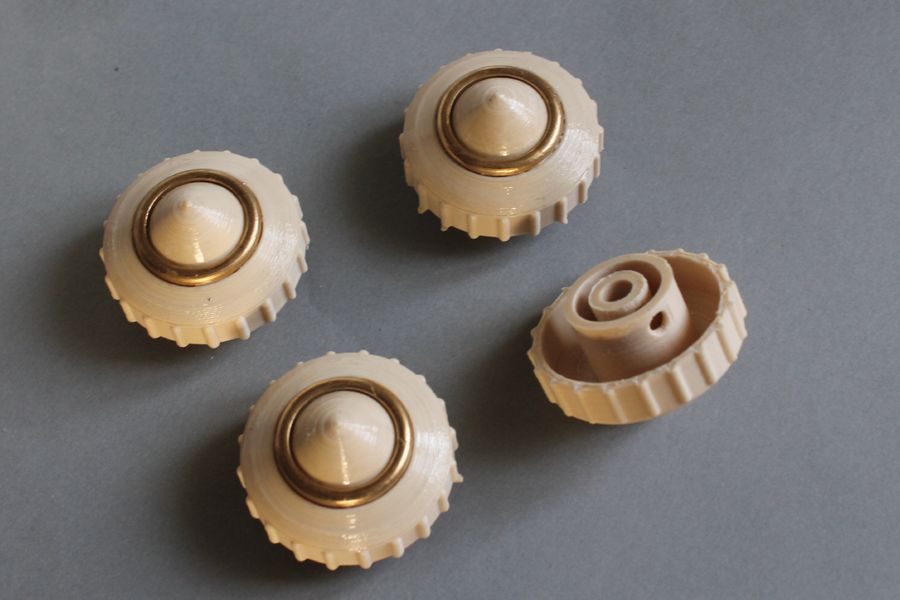 La nuance visible par rapport à l'original est une petite différence de couleur de la reproduction. De fines stries sont également visibles, dues à l'imprimante 3D (voir photos).